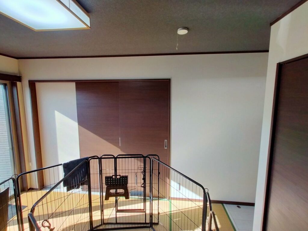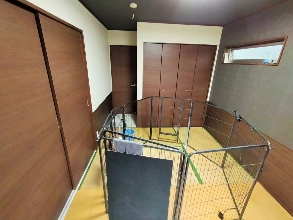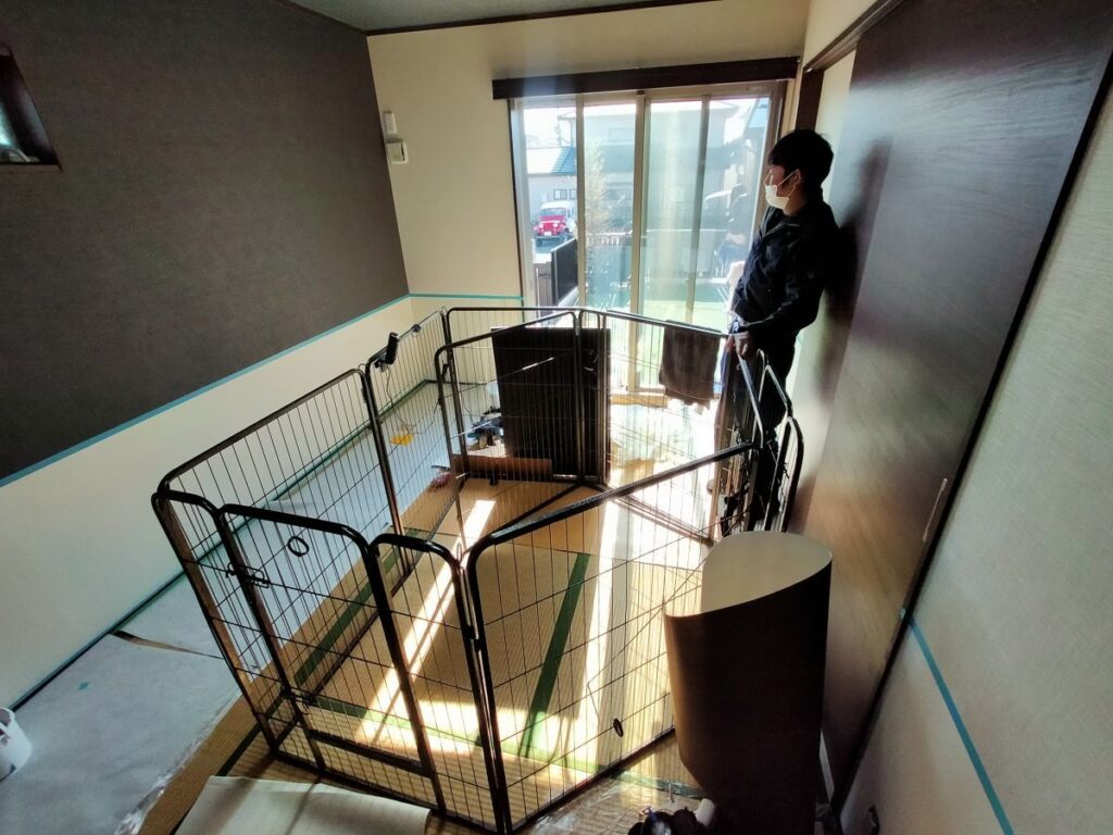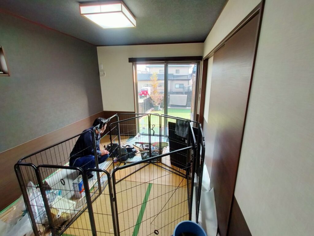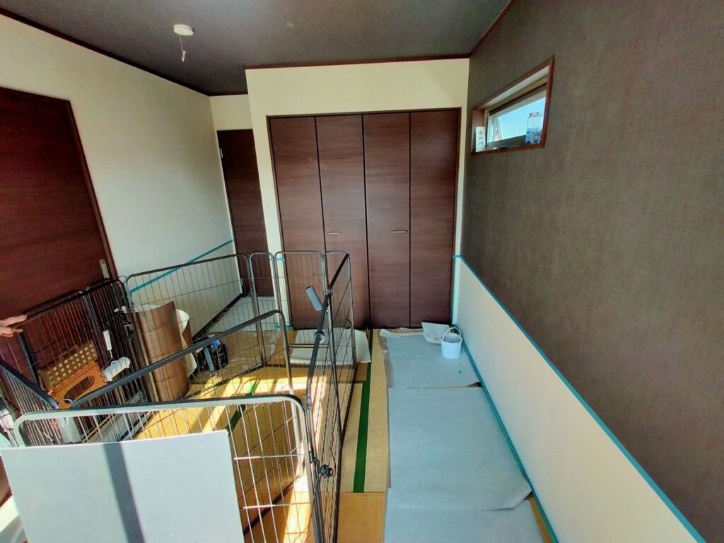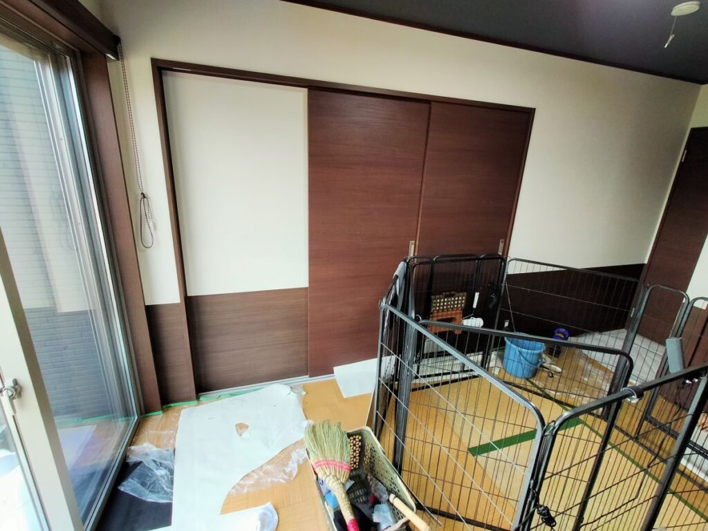 現在の和室がワンちゃんのお部屋となっており、クロスが傷つかないような素材で腰壁シートを施工してほしいとのご要望でした。