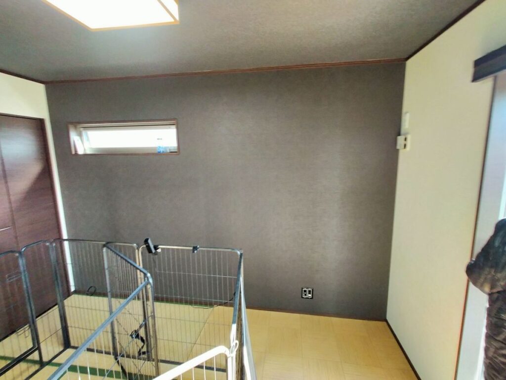 熊本県熊本市東区にお住まいのお客様よりワンちゃんのお部屋となっている和室の腰壁にクロスが傷つかないような素材で腰壁シートを施工してほしいとご依頼がありました。